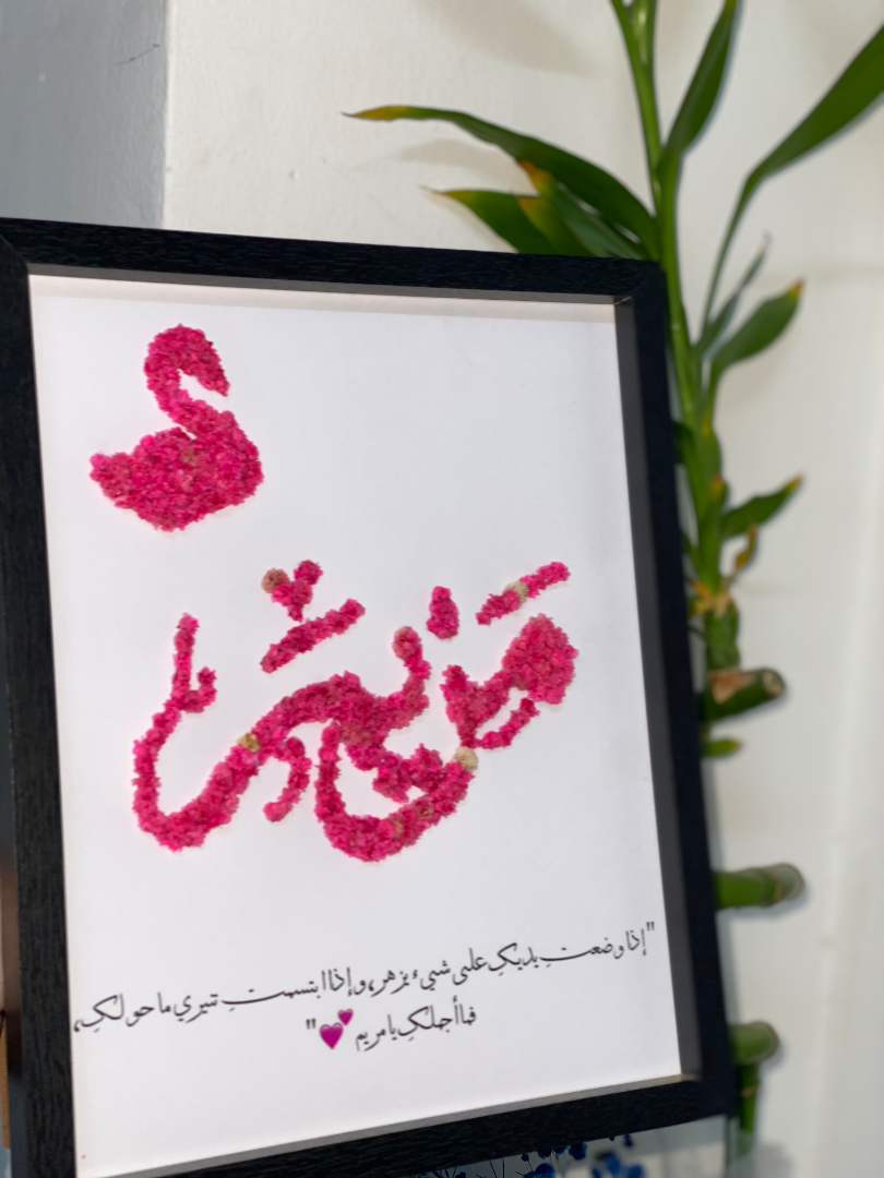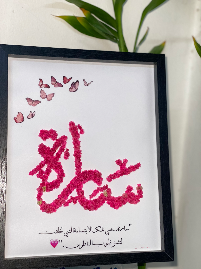 برواز مميز مصنوع بحب، مصمم باسم اللي بتحبيه ولمسة ورد أنيقة تضيف دفء لأي زاوية بالبيت 🤍